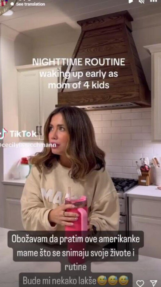 - Obožavam da pratim ove Amerikanke, mame, što snimaju svoje živote i rutine, bude mi nekako lakše.
