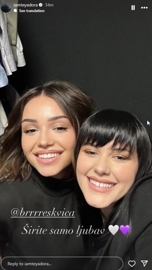Međutim, između dve koleginice ne postoji zla krv, što su dokazale i zajedničkom fotografijom koju je objavila Teya Dora, a u opisu je napisala "Širite samo ljubav".