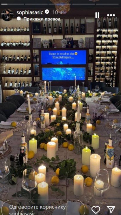 Sonja je proslavu napravila u jednom prestoničkom restoranu, a dekoracija je sve prisutne ostavila bez daha. Po stolu su svuda bile bele sveće i limuni.