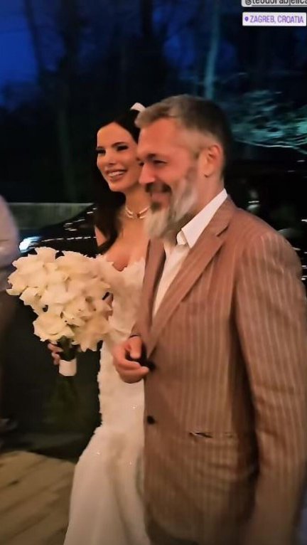 Glumica Teodora Bjelica je izgovorila sudbonosno "da" u prisustvu najbližih članova porodica i prijatelja, a pred oltar izveo ju je stariji gospodin.