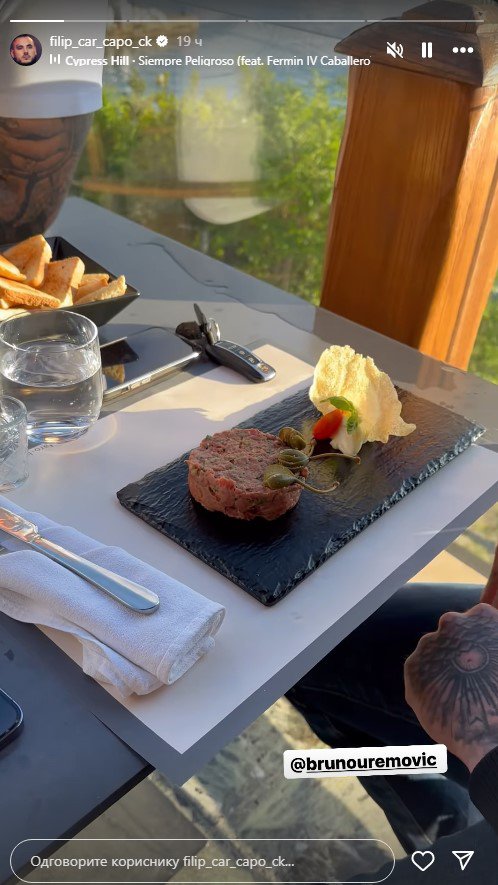 Tako je Car jučerašnje popodne proveo sa svojim prijateljima, na ručku, tik pored mora i snimkom se pohvalio na Insatgramu.