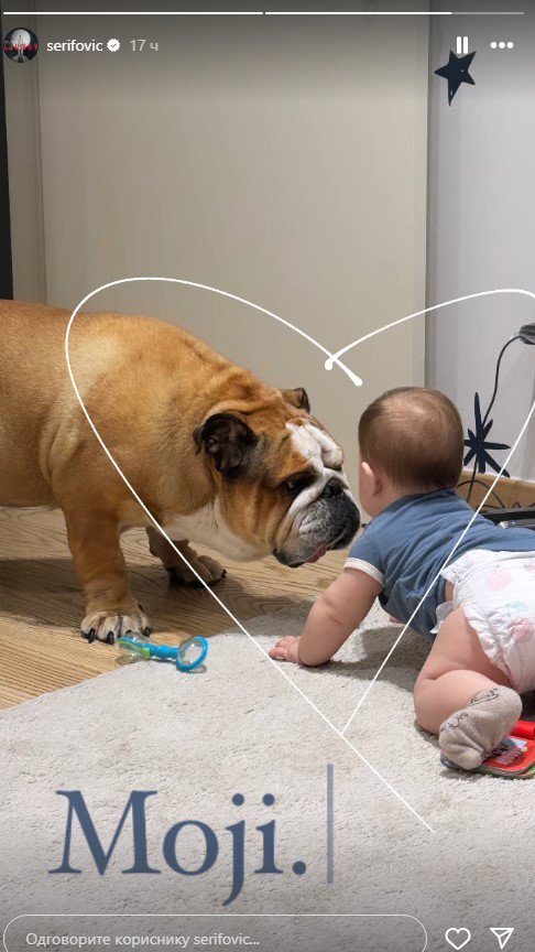 Ona je podelila na Instagramu fotografiju sina kako puzi, dok je pas Hak gledao u Maria, a pevačica je htela da se istopi prizorom.