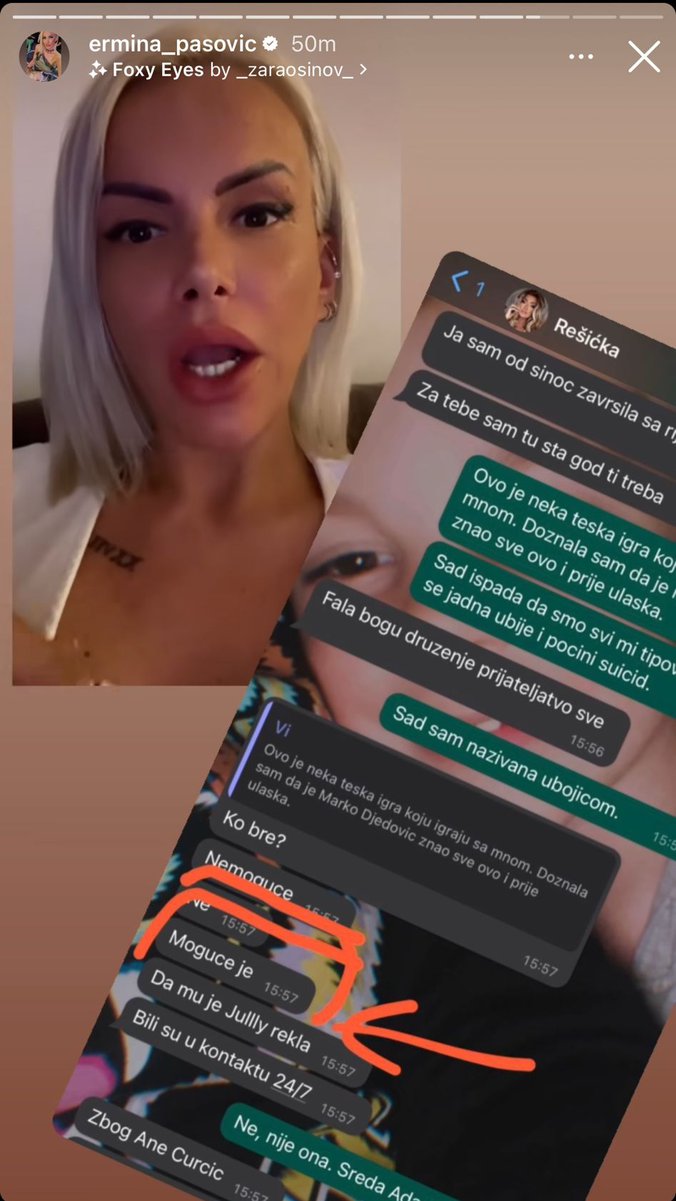 Ermina je zatim priložila prepisku kako joj je Rešićka poslala poruku da je ipak Jully Pandora znala za celu priču: