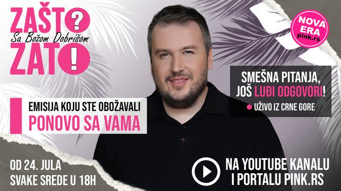 Ekipa portala Pink.rs vredno je radila na još jednom projektu, pa se tako NOVOJ ERI priključuje i novinar i voditelj iz Crne Gore Božo Dobriša koji će nas zasmejavati u kultnoj emisiji Pink televizije "Zašto, zato".