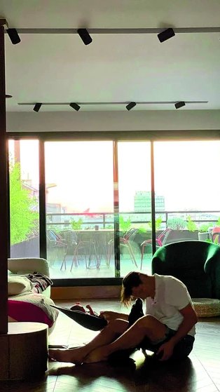 Ono što se može odmah primetiti da je prostrana dnevna soba uređena u minimalističkom stilu, ali ono što njihov stan izdvaja od većine sličnih jeste ogromna terasa sa koje se pruža pogled na ceo grad.