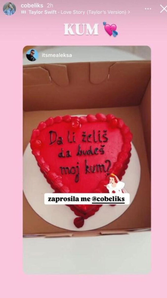 Čokić je, počastvovan ovim gestom, objavio sliku torte i napisao: "Zaprosila me Cobeliks".