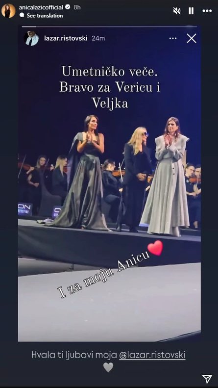 Anica je blistala u beloj odevnoj kombinaciji, a Lazar Ristovski ju je sve vreme ponosno pratio iz publike. Koliko je ponosan na svoju izabranicu pokazao je i objavom na Instagramu.