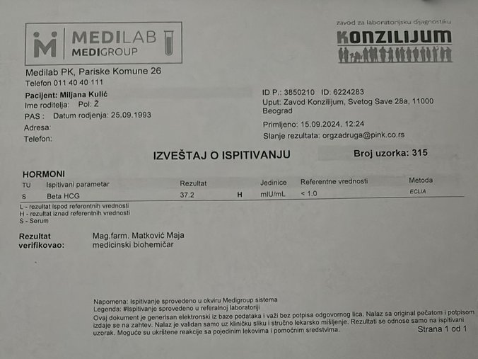 Redakcija portala Pink.rs došla je u posed Miljaninog testa za trdunoću koji pokazuje dve crte, ali i rezultata krvi, koji potvrđuju trudnoću.