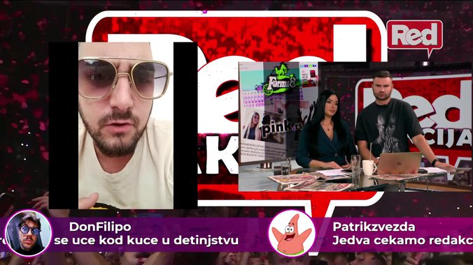 Voditelji današnje RedAkcije su urednica rublike zabava portala Pink.rs Milica Krasić i novinar Goran Todorović.