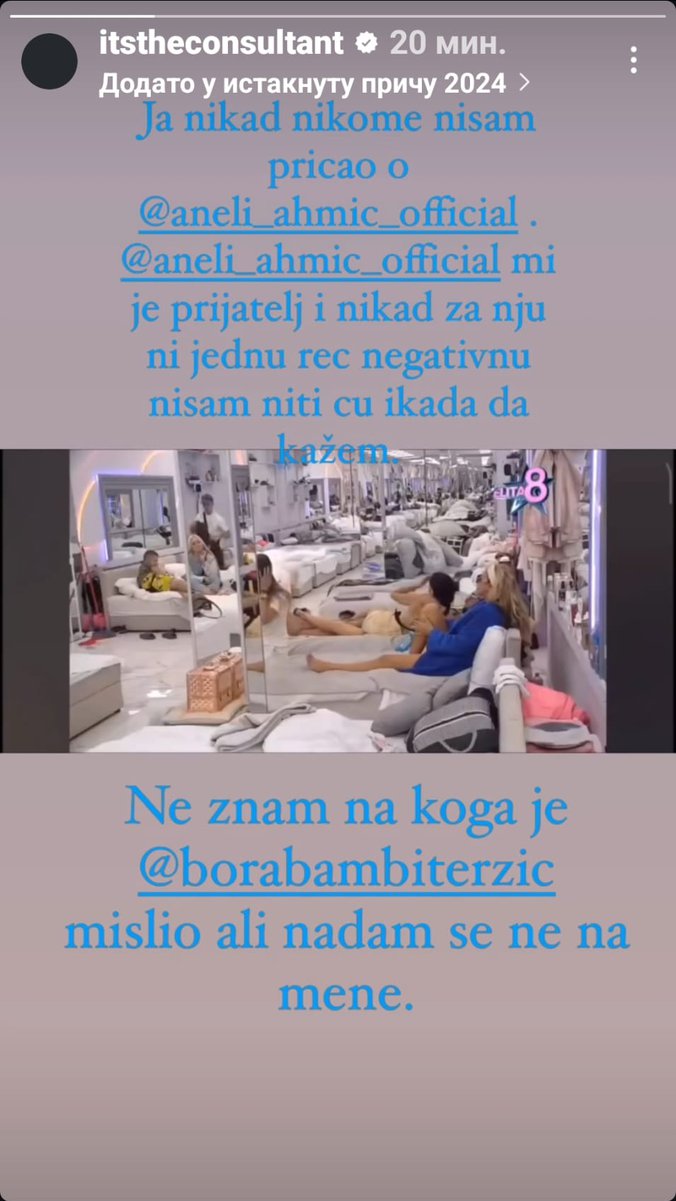 Tokom svađe Bore Terzića i Aneli Ahmić, Bora je potkačio za jednog muškarca, a sada se na svom instagram profilu oglasio Anelin, kako on kaže, prijatelj Ivan Radović, koji je demantovao Terzine navode.