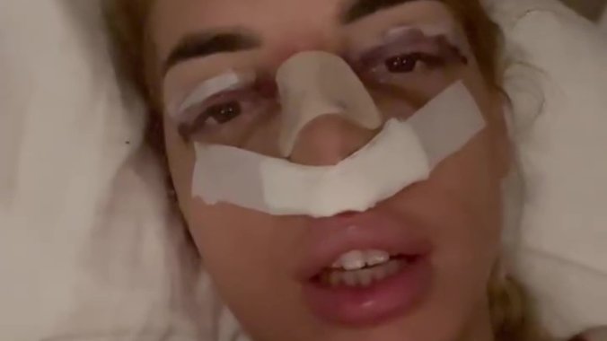 Ona je danas objavila uznemirujući snimak, gde je potpuno modra, u zavojima i gotovo da jedva govori. Ona je objasnila da je operisala nos, ali to nije sve. Korigovala je spuštene kapke, a detalje će postepeno iznositi, s obzirom da je još u procesu oporavka: