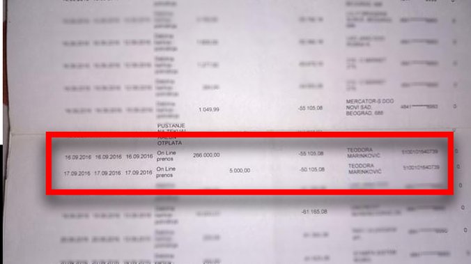 Pink.rs došao je i posed izvoda iz banke, na kom se vidi da je Teodori uplaćen novac, tj. 296.000 dinara.