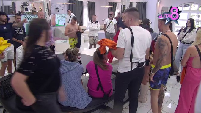 - Draga Elito, Evo o kakvom je izazovu reč: Na vama je da čašama koje ćete prenositi na poslužavniku prenesete što više vode u kante koje se nalaze na Rajskom ostrvu. Na početnoj lokaciji pozicionirano je bure puno vode, odakle ćete puniti čaše I stavljati na poslužavnike. Poslužavnike pune čašama sa vodom potrebno je prevesti kajacima koji će biti postavljeni na doku ispred Dubioze. Grupa koja skupi što više vode u kantu na ostrvu, pobednička je.Nakon što se podelite po grupama, uputićete se kod Dubioze odakle ćete I započeti igru. Dakle, jedna osoba iz tima puni čaše vodom, slaže ih na poslužavnik, seda u kajak i u isto vreme vesla i nosi čaše na ostrvo. Strogo je zabranjeno čaše dopunjavati vodom iz jezera. Kada ta jedna osoba prospe iz časa u kantu na ostrvu svu vodu koju je prenela i vrati se na početnu poziciju, sledeća osoba iz tog tima kreće i tako dok sve osobe iz grupe ne urade ovo isto. Uz ovo pismo šaljemo vam majice u bojama koje treba da obuku dobrovoljci. S obzirom na to da su kante na ostrvu obeležene, odnosno da na njima piše 1.grupa, 2.grupa, 3.grupa, 4. grupa i 5.grupa neophodno je da znate koja boja je koja grupa kako biste znali u koju kantu prosipate vodu koju ste doneli na ostrvo. 1. grupa je crne boje2. grupa je plave boje3. grupa je narandžaste boje4. grupa je žute boje5. grupa je crvene boje Napominjemo da je neophodno da skinete bubice pre ulaska u kajak. Kada stignete ispred Dubioze, postavićete se tako da svaka grupa stoji ispred jednog kajaka. Na znak Velikog šefa, po jedan takmičar iz svake grupe počinje da puni čaše vodom i slaže ih na poslužavnik. Kada napuni čaše, seda u kajak i vesla sve do ostrva. Tamo prosipa vodu koju je doneo, u kantu sa brojem grupe kojoj pripada i vraća se na početnu poziciju da bi sledeći takmičar iz grupe krenuo. - glasilo je pismo Velikog šefa.