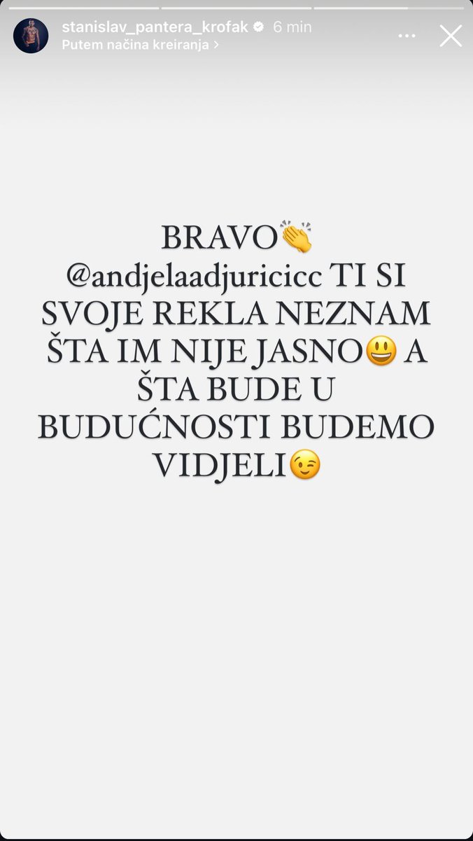 - Bravo, Anđela, ti si svoje rekla ne znam šta im nije jasno, a šta bude u budućnosti budemo videli - napisao je Stanislav.