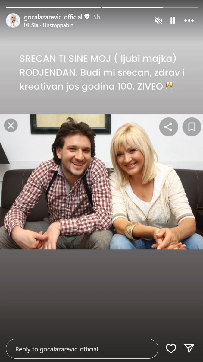 Goca je objavila njihovu zajedničku fotografiju, te mu se obratila emotivnim rečima.