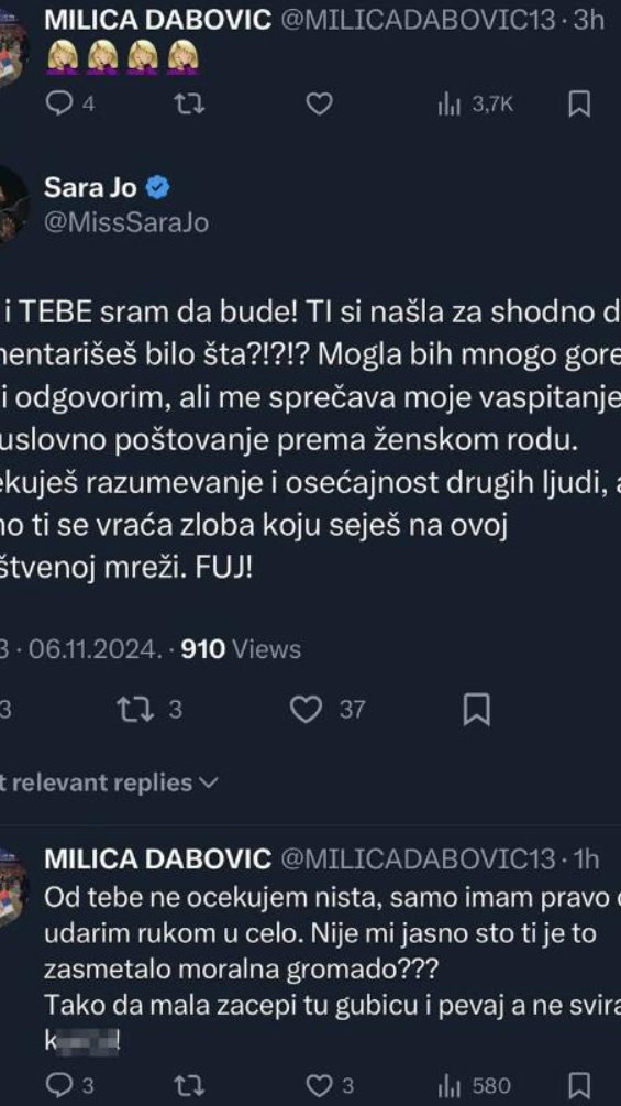 Ova objava izazvala je brojne reakcije korisnika platforme "X", među kojima je bio i komentar Milice Dabović, koja je postavila emotikone koji se lupaju u glavu.