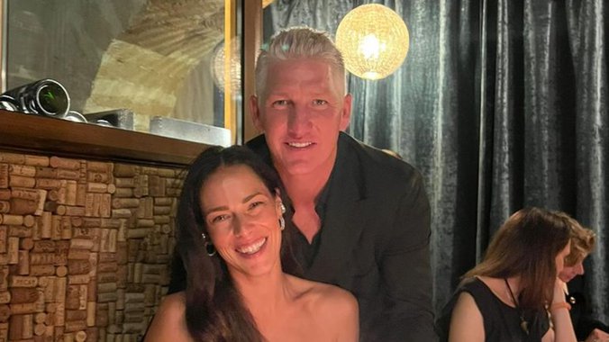 Ana je zasijala u crnoj haljini kreaciji sa golim ramenima, a pozirala je držeći slavljeničku tortu, dok je suprug, bivši fudbaler Bastijan Švajnštajger, nežno zagrlio.