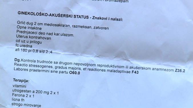 Milice, ti si spremila izbeštaj od tvog ginekologa, koji jasno svedoči tome da si imaš rizik od prevremenog porođaja, usled stresa koji ti se desio. O čemu se radi?
