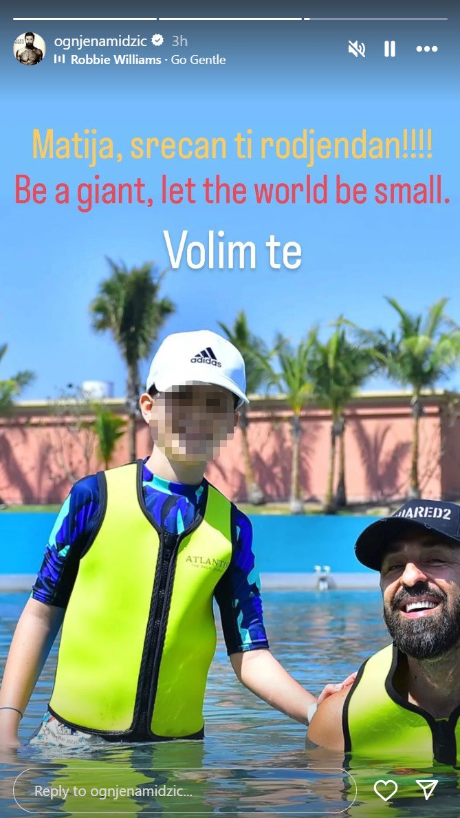 Ognjen Amidžić iz braka sa bivšom suprugom ima sina, Matiju, kom je danas rođendan, a kom se voditelj obratio putem instagram storija. Objavio je njihovu zajedničku fotografiju sa letovanja uz koju je napisao:
