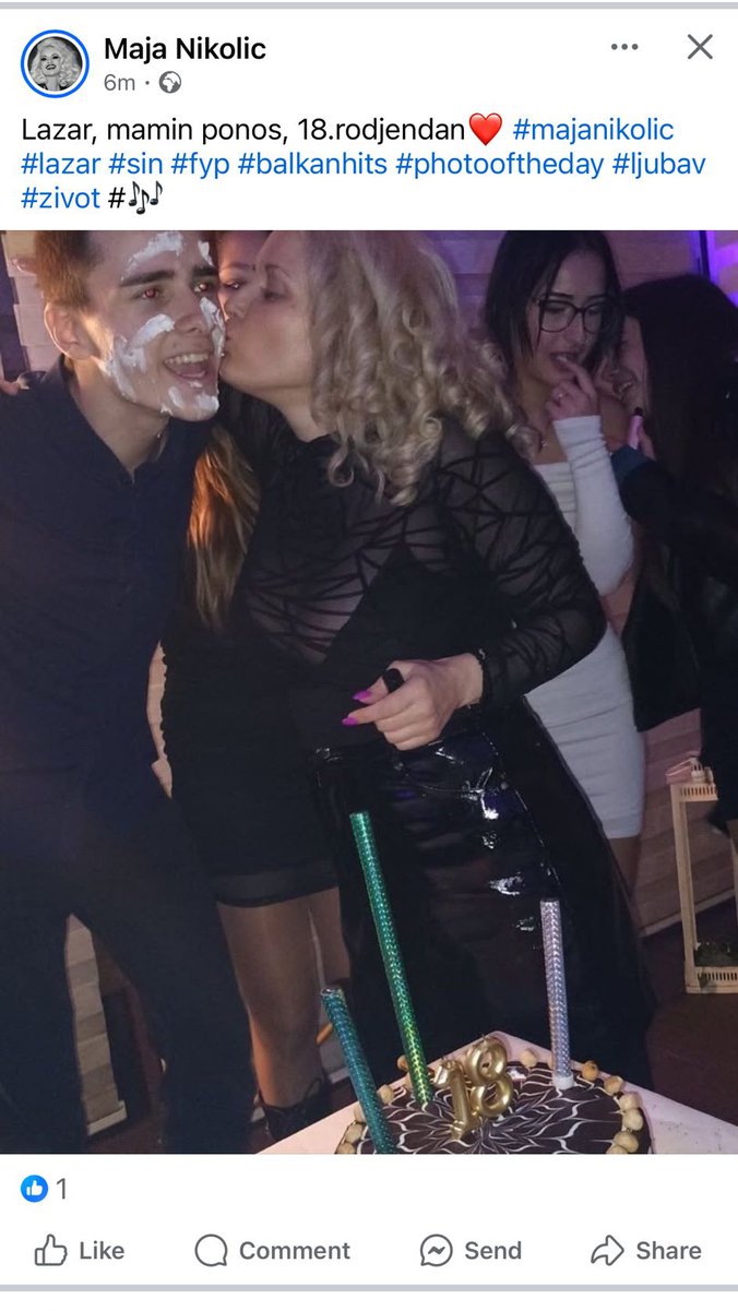 - Lazar, mamin ponos, 18.rođendan - napisala je Maja i stavila crveno srce.