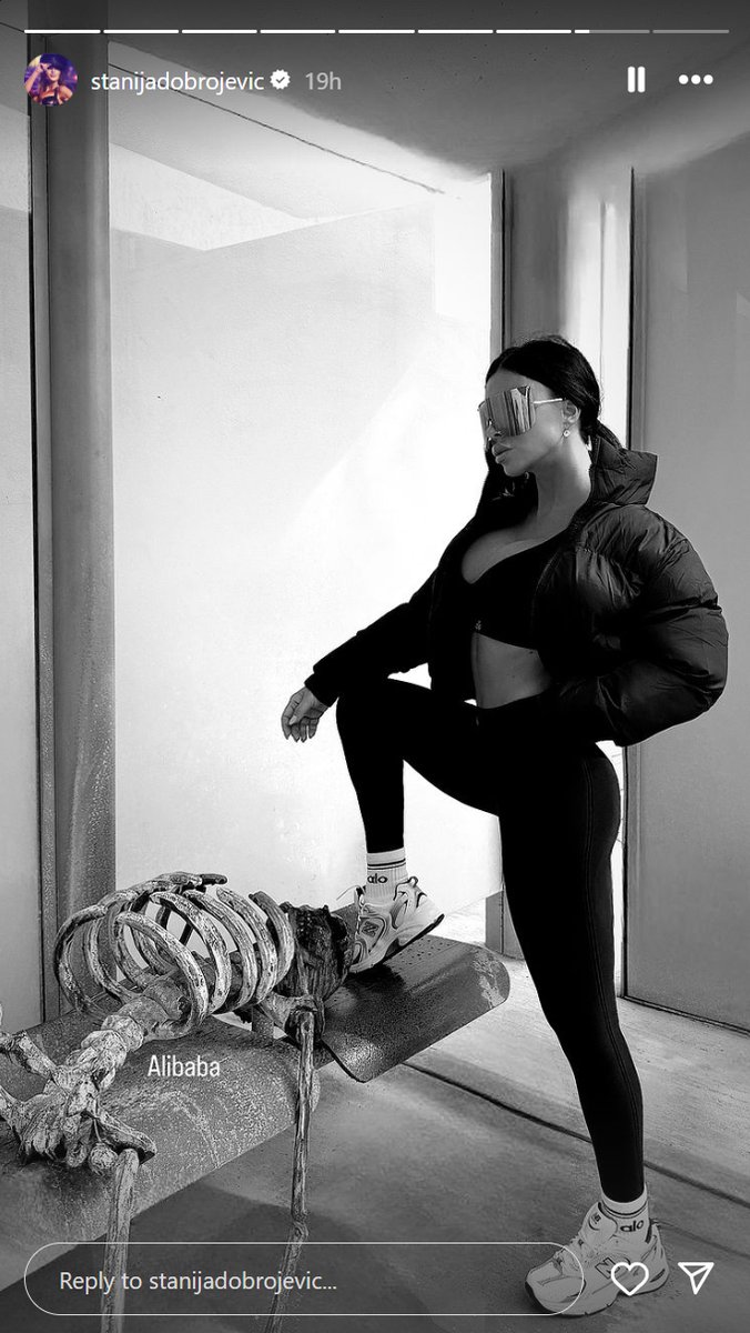 Sada je na Stanijinom instagramu, sudeći po komentarima na mrežama, osvanula bizarna fotka. Naime, Stanija je na fotki u bikiniju koji je istakao njenu liniju, ali štiklom gazi kostura, što je diglo ogromnu prašinu u medijima. No, međutim, to nije sve! Da stvar bude još bizarnija, Stanija je na fotografiji pored na kosturu napisala Alibabino ime, a mnogi korisnici društvenih mreža došli su do zaključka da je poruka ove fotografije to da će mu ona na kraju, doći glave.