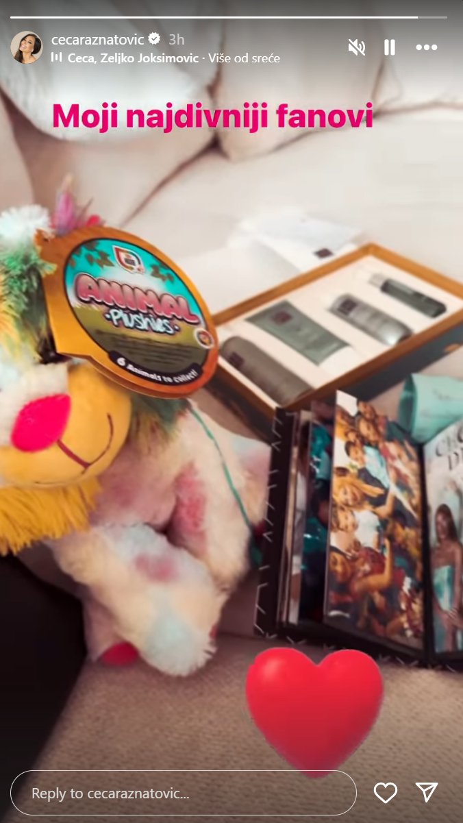 Ceca Ražnatović dobila je plišanu igračku u obliku psa, set kozmetike, kao i album sa njenim slikama.