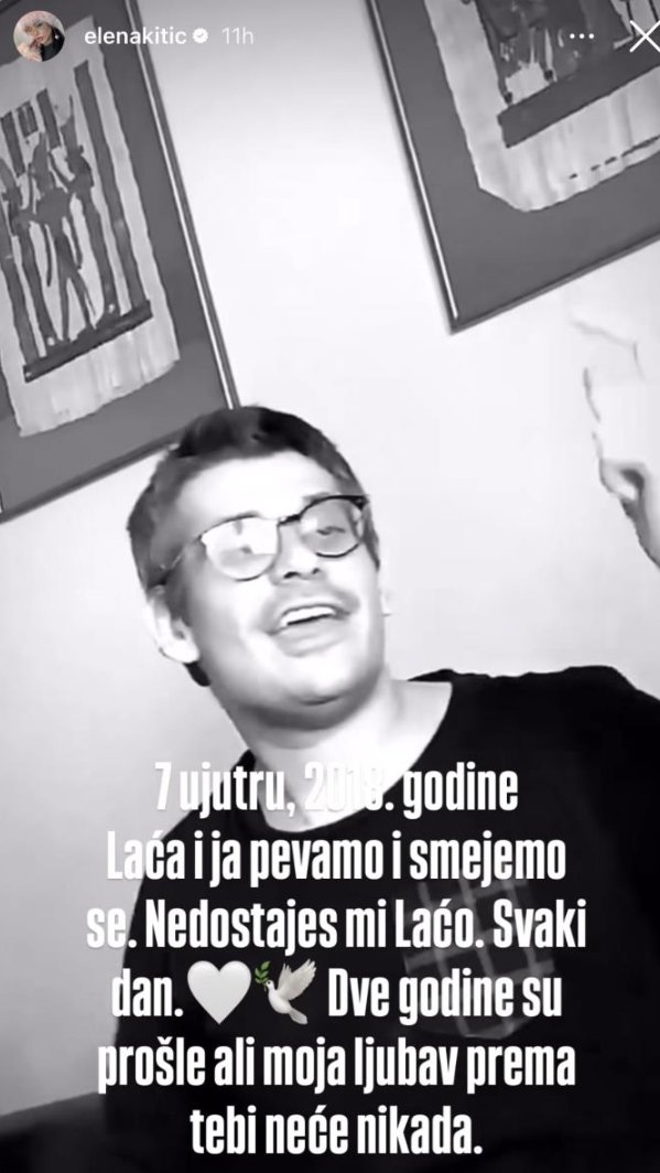- Sedam ujutru, 2018. godine. Laća i ja pevamo i smejemo se - napisala je Elena, te otkrila koliko joj je teško što njenog prijatelja više nema: