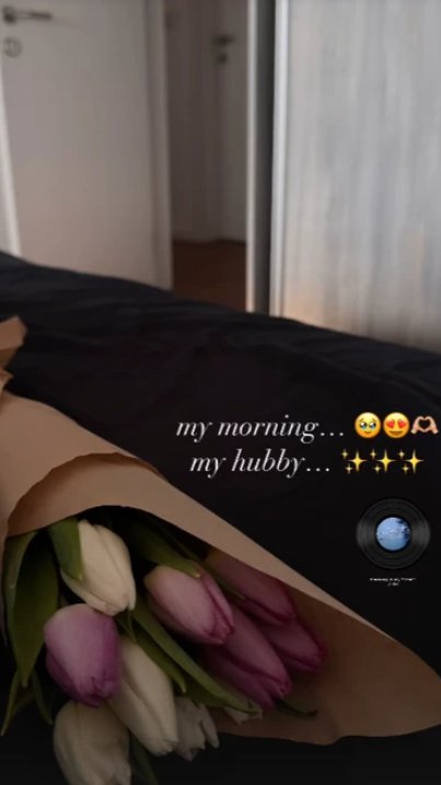 Jovana Ljubisavljević je objavila fotografiju iz kreveta i pokazala da ju je Bogdan iznenadio čim je otvorila oči time što ju je na posteljini sačekao buket lala.