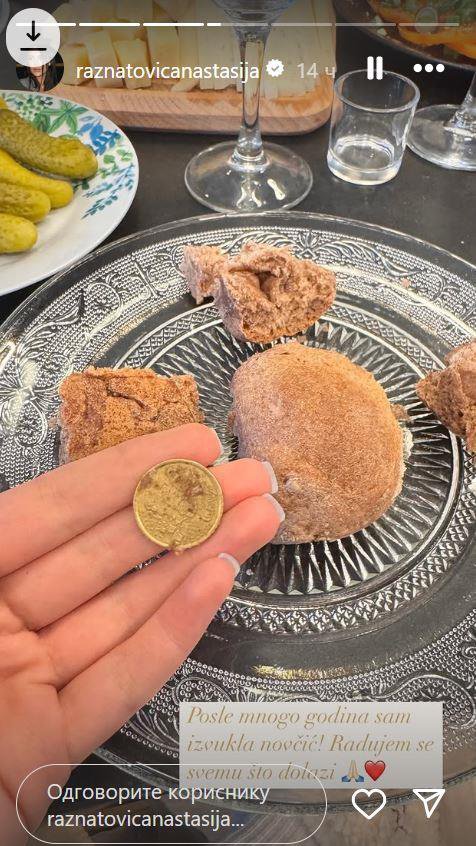Česnicu je tradicionalno umesila mama Olivera, a novčanicu je ove godine izvukla njena snaja Anastasija.