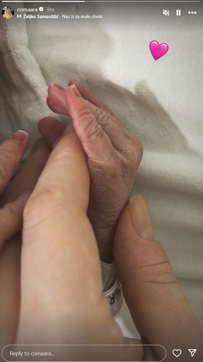 Milica je sada na storiju na Instagramu objavila fotografiju rukice male Barbare uz stihove pesme Željka Samardžića ''Nisi ti za male stvari''.