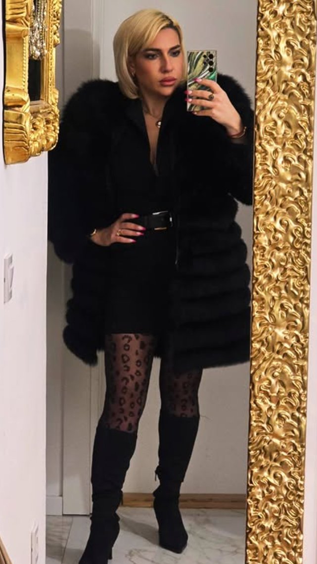 Voditeljka je obukla mini crnu haljinu a preko nje se ogrnula luksuznom bundom. Na nogama je nosila čizme do kolena, ali ono što je posebno upadalo u oči su leopard čarape koje nosi voditeljka "Jutra sa dušom".