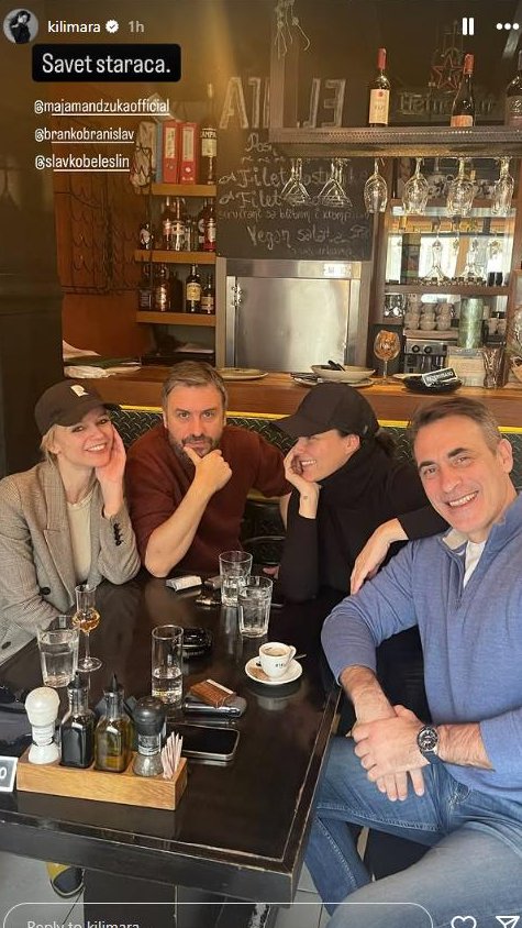 Ona je sada podelila fotografiju na kojoj se vidi kako je izašla na piće sa prijateljima i kolegama među kojima su glumica Maja Mandžuka, Bane Trifunović i voditelj Slavko Beleslin. Oni su nasmejani pozirali u jednom prestoničkom restoranu, a lepa voditeljka je se u svom stilu našalila na svoj račun.
