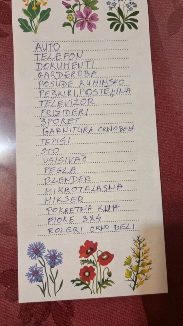 U nastavku pogledajte spisak stvari koje je Aleksandrina drugarica Josipa tražila.
