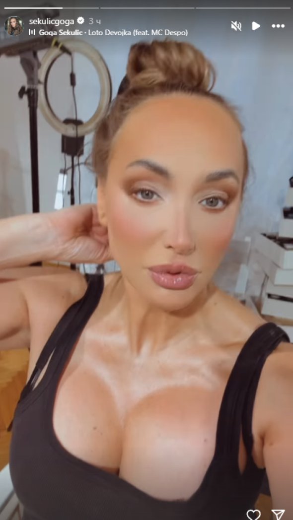 Pevačica Goga Sekulić je poslednjom objavom raspametila svoje pratioce na mrežama. Naime, Sekulićeva je objavila snimak na kom se vidi kako nosi tanku, crnu majicu ispod koje se naziralo bujno poprsje.