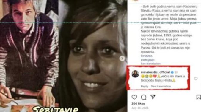 Pevačica Mina Kostić reagovala je na objavu jedne popularne Instagram stranice i po svemu sudeći, nenamerno, upokojila glumicu Evu Ras, ili su bar tako njen potez protumačili pratioci.