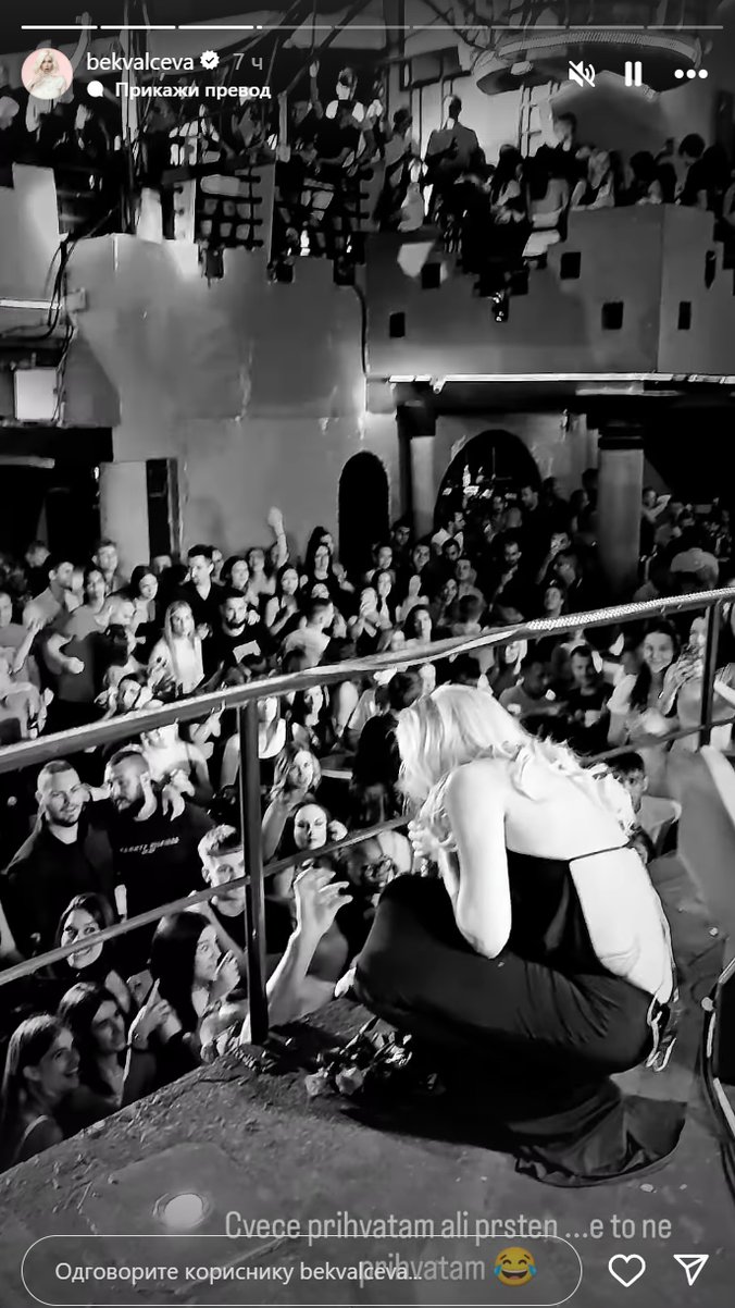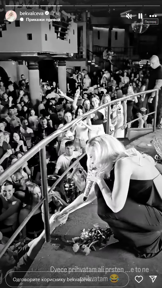 Ona je sinoć odžala koncert u prepunoj diskoteci u Požarevcu, a u jednom momentu je momak iz publike došao do bine i doneo joj cveće koje je ona odmah uzela.