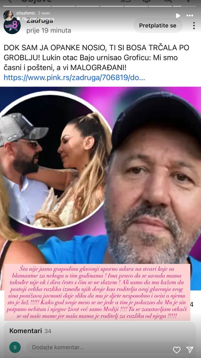 - Otkači se od naše mame, jer naša mama je roditelj, za razliku od tebe poručila je Sita na Instagramu.