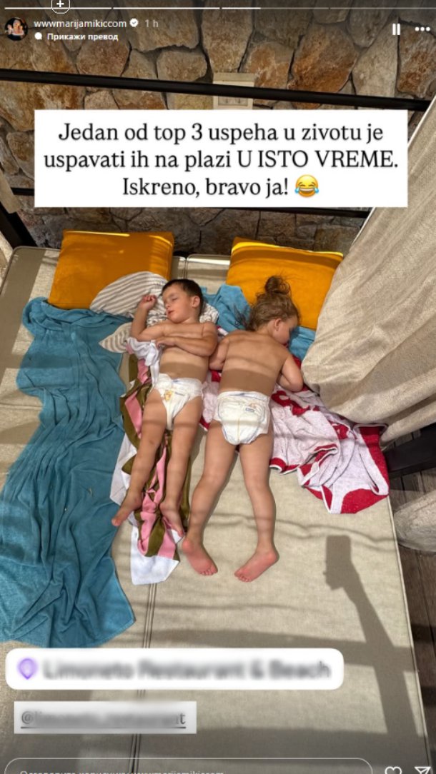 Marija je sa decom otišla u Crnu Goru odakle će ići na poslovna putovanja, ali i raditi zakazane nastupe u komšiluku. Nedavno se oglasila sa jadranske rivijere i prvo "zapretila sestri", a onda objavila i fotku dece.
