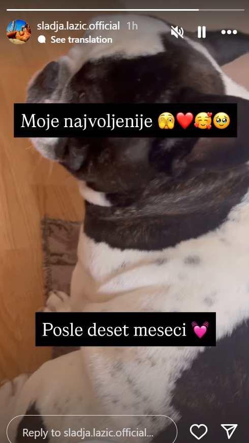 Po svemu sudeći, s nestrpljenjem je iščekivala susret sa svojim psom Hugom, što je i sama podelila na svom instagram profilu, ističući da je spokojna, jer ga je ugledala posle dužeg vremenskog perioda.