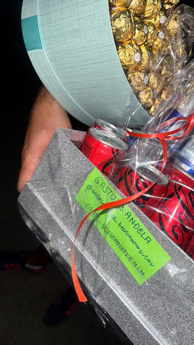 Fan stranica Anđele i Gstoza im je priredila iznenađenje u vidu njihovih omiljenih čokoladica i napitaka. Napisali su i posvetu, ali i označili svoju fan stranicu.