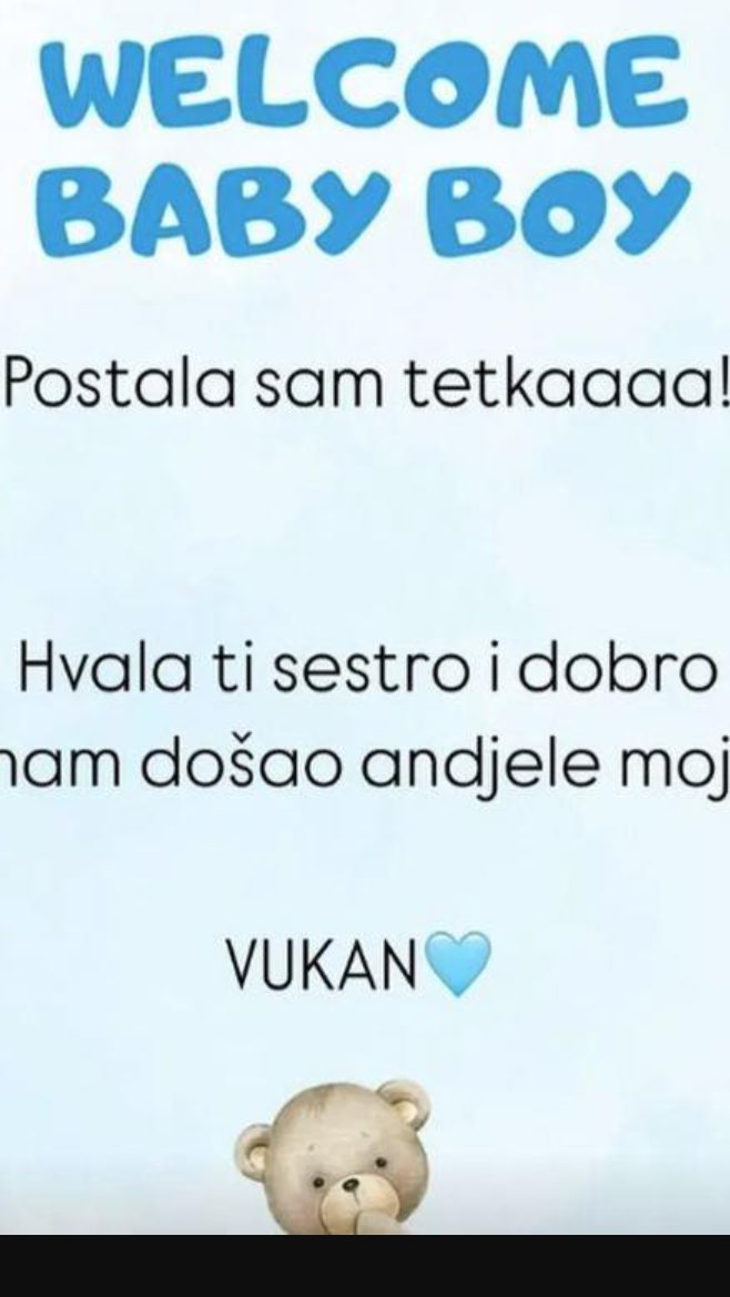 - Postala sam tetka. Hvala ti puno sestro i dobro došao anđele moj. Vukan - napisala je ona uz emotikon plavog srca.