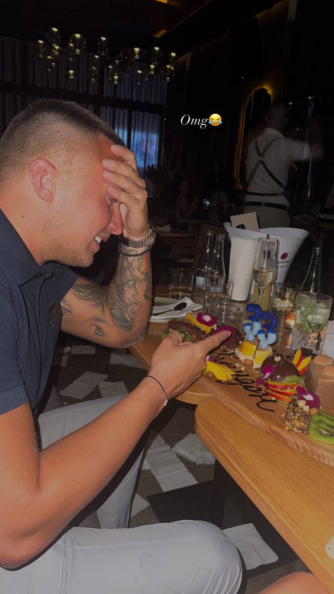 Naime, njegova lepša polovina je na svom Instagram profilu objavila kako ga je iznenadila u ponoć u jednom prestoničkom lokalu sa daskom na kojoj je pisalo: ''Srećan rođendan'', a na kojoj je bilo puno voća i kolača, kao i svećica u broj 33.