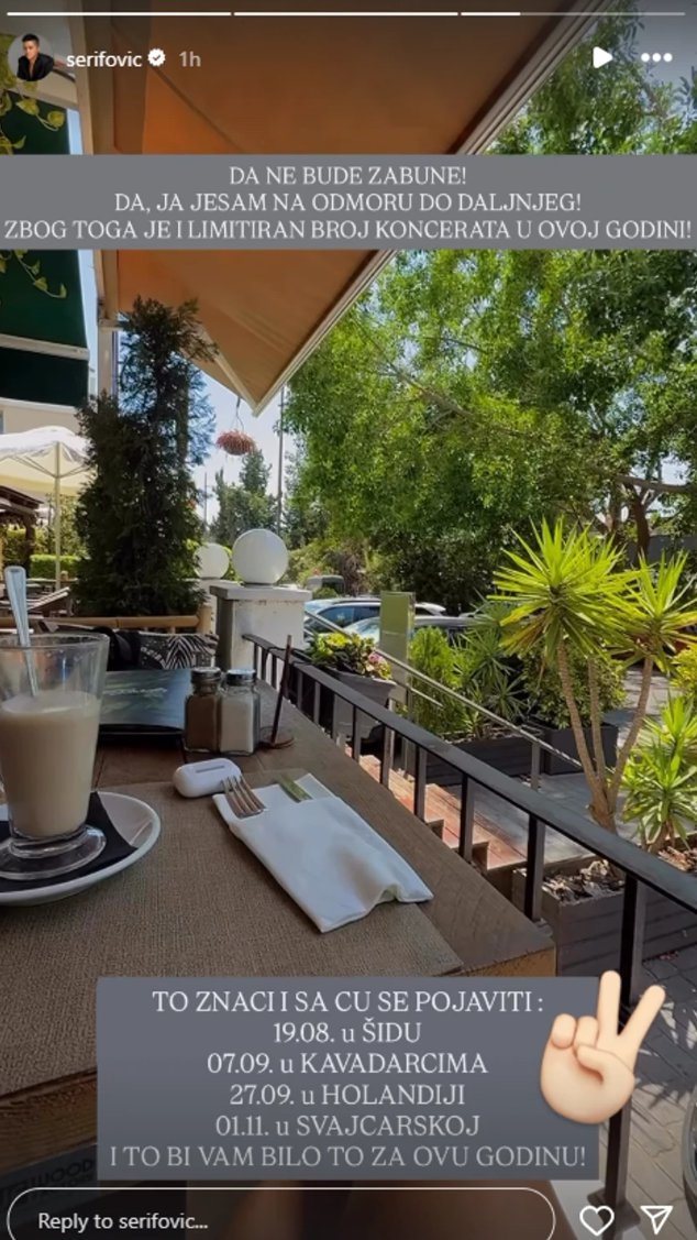 "Da ne bude zabune! Da, ja jesam na odmoru do daljnjeg. Zbog toga je i limitiran broj koncerata u ovoj godini" - rekla je Marija, pa napisala datume naredna 4 koncerta i dodala: