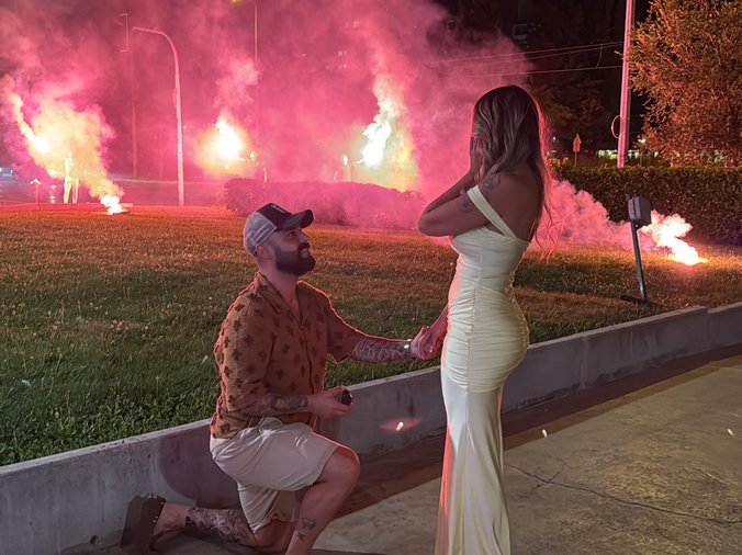 Vujović je, naime, izveo uz pomoć majke Biljane i okupljenih prijatelja iz lokala, te joj je priredio spektakularni vatromet. Kako je zasijalo nebo na Novom Beogradu, iznenađenju nije bilo kraja. Naime, on je prišao svojoj devojci, kleknuo ispred nje i pred svima je upitao da ostatak života provede sa njim, na šta je ona odmah pristala. Kako je sve ovo bajkovito i magično izgledalo, pogledajte u nastavku: