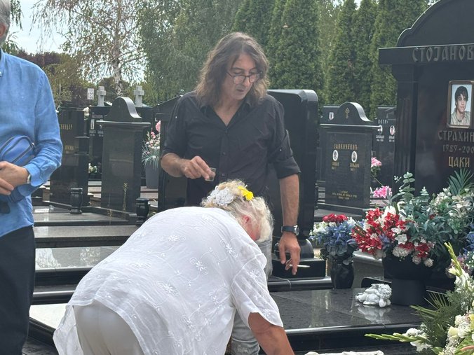 Ispod velikog mermernog spomenika sa Sašinom slikom na grob je položen venac od ruža i beli anđeli. Nakon sveštenika i udovice pokojnog estradnog maga Suzane Jovanović i njihove ćerke Aleksandre i sina Danijela, krenuli su da pristižu i Sašini najbliži prijatelji i saradnici Bane Bojanić, Ćira, Dragan Kojić Keba sa suprugom Oljom, Goran Šljivić, Zoran Pejić Peja... Na pomen je stigla i rođena sestra pokojnog Saše Popovića Ivanka Popović. Na šest meseci su stigli i Viki Miljković i Taske, Snažana Đurišić sa Vanjom, Bane Obradović, Vesna Milanović, Dragana Katić...