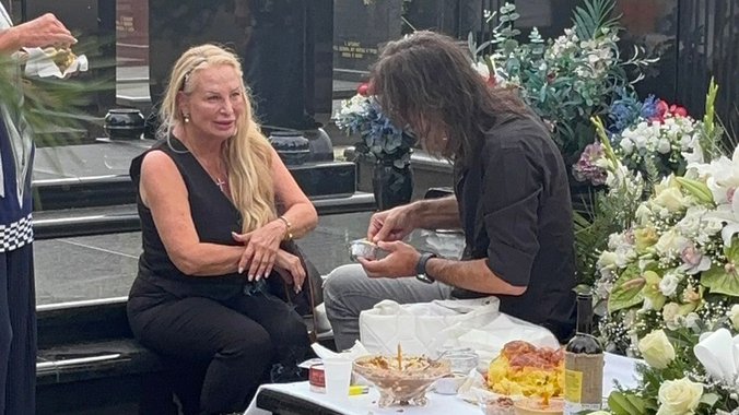 Rale je seo na grobnicu i okrenuo leđa Sašinoj fotografiji, dok na očigled svih koketirao sa plavušom.