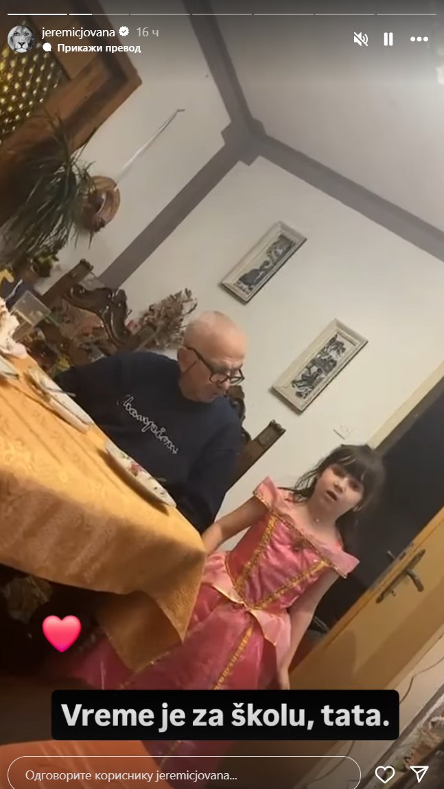 Voditeljka Jovana Jeremić je spremila svoju ćerkicu Leu za školu. I dok Lea ushićeno započinje novo životno poglavlje Jovana ne može da sakrije bol zbog toga što njen otac nije dočekao da unuku isprati u prvi razred.