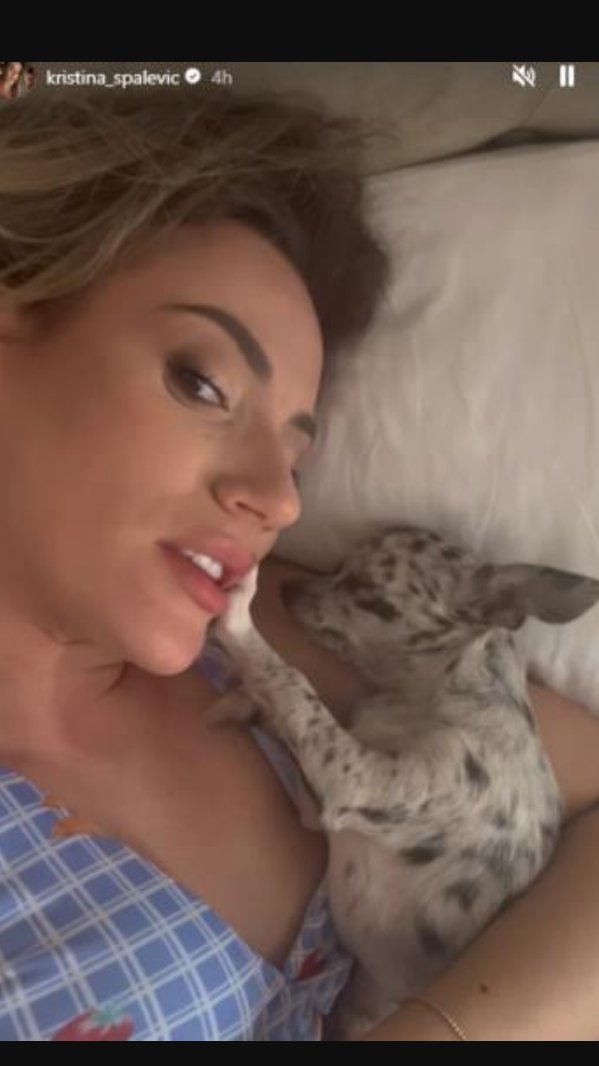Naime, nakon što je Kristina ispričala šta je dovelo do raskida, sada se snimila u krevetu sa svojim kućnim ljubimcem, od kog se inače ne odvaja.