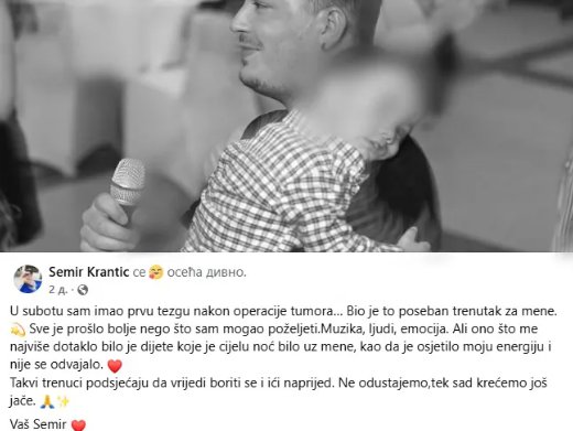 Semir Krantić, pevač poznat po učešću u jednom muzičkom takmičenju, nedavno je prošao kroz tešku životnu borbu ,operaciju tumora.