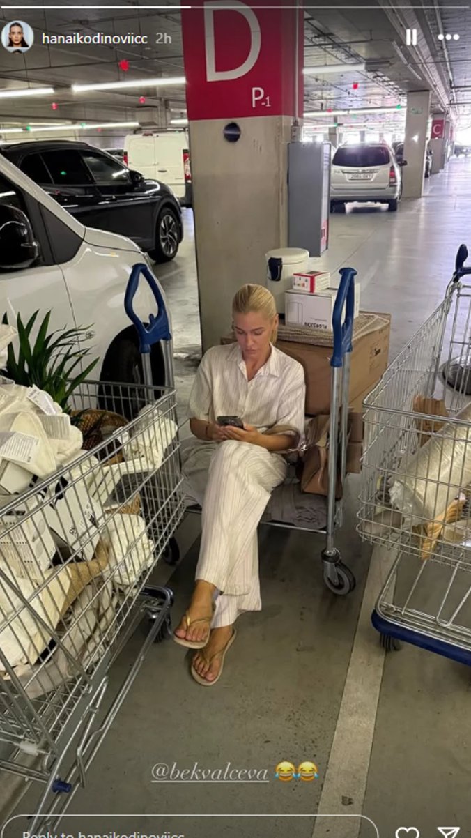 Naime, Hana Ikodinović uslikala je svoju majku Natašu kako sedi na kolicima u japankama i beloj haljini i gleda u telefon, verovatno premorena od ogromne kupovine.